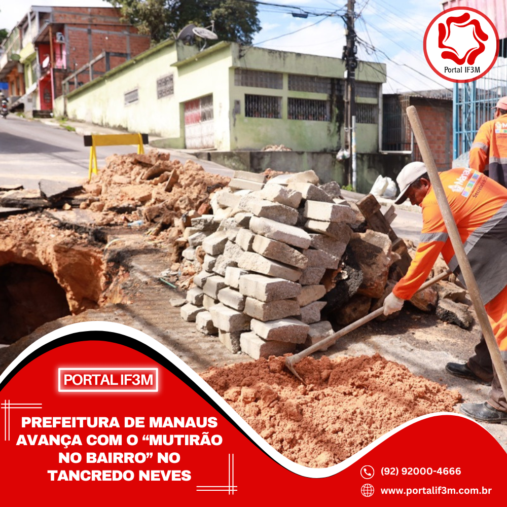 A Prefeitura de Manaus, por meio da Secretaria Municipal de Infraestrutura (Seminf), atua no bairro Tancredo Neves, nesta terça-feira, 10/6, por meio do programa “Mutirão no Bairro”, um programa que leva infraestrutura e qualidade de vida para a população manauara.