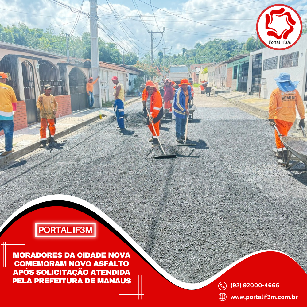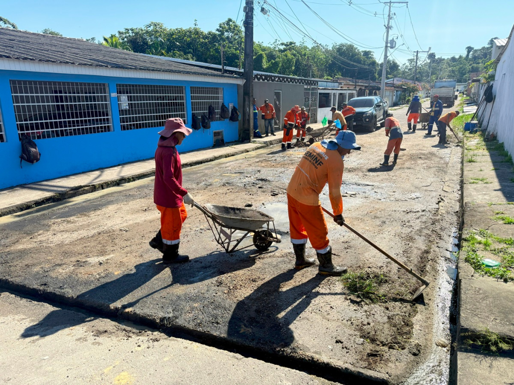 A Prefeitura de Manaus, por meio da Secretaria Municipal de Infraestrutura (Seminf), atendeu nesta quarta-feira, 9/8, uma antiga solicitação dos moradores da rua 115, no núcleo 11 do bairro Cidade Nova, zona Norte, com a realização de serviços de recuperação asfáltica. A chegada das máquinas foi recebida com entusiasmo pela comunidade que comemorou a melhoria no acesso e na mobilidade da via.