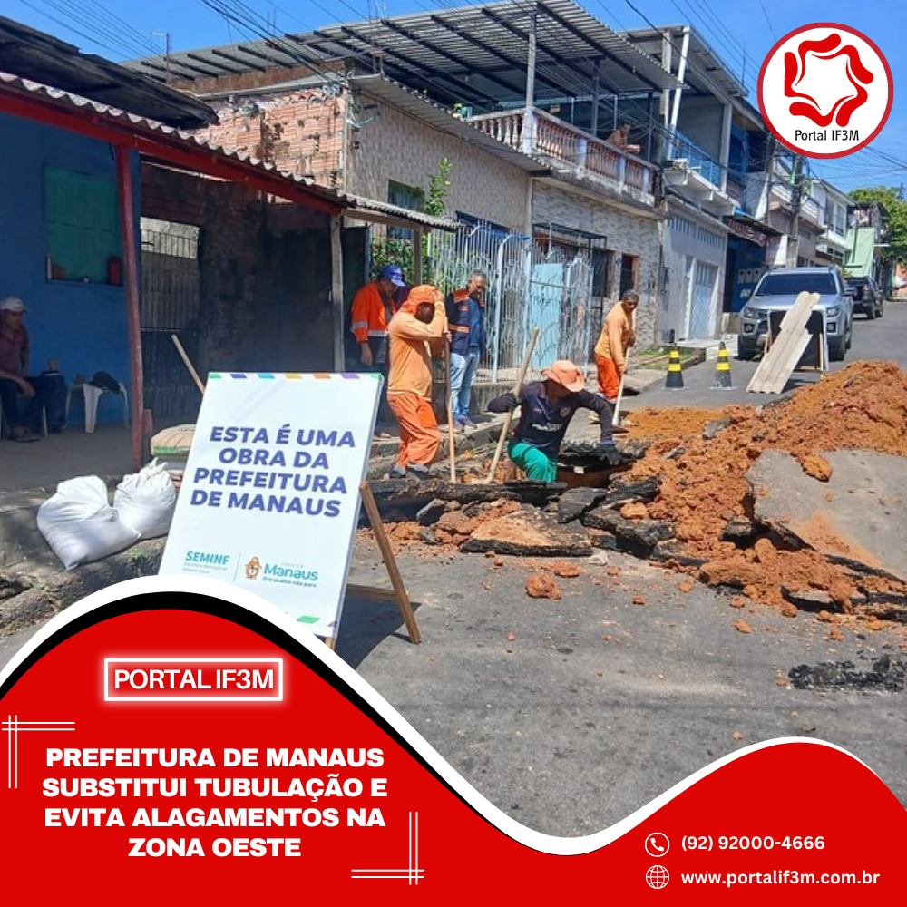 A Prefeitura de Manaus, por meio da Secretaria Municipal de Infraestrutura (Seminf), atua com celeridade na substituição de tubulação deteriorada na rua Santos Dumont, no bairro Compensa, zona Oeste da capital. A intervenção, realizada nesta sexta-feira, 18/7, tem como objetivo recuperar a rede de drenagem profunda da via, para garantir o escoamento adequado das águas pluviais e prevenir os alagamentos que historicamente afetam a região.