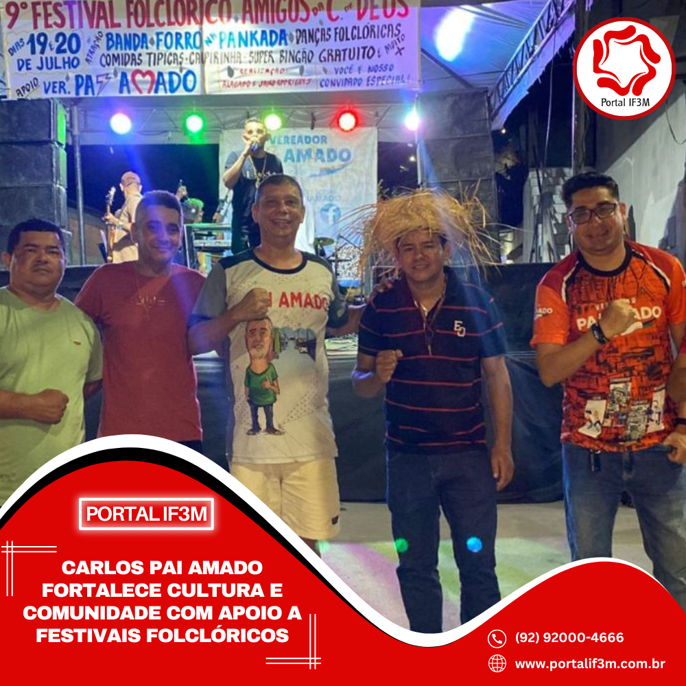 O vereador Carlos Pai Amado (Avante) tem sido um incentivador ativo da cultura popular e da vida comunitária, com foco especial nos festivais folclóricos e celebrações de aniversário de bairros das zonas Leste e Norte de Manaus. Seu mandato tem direcionado esforços para valorizar as tradições locais e oferecer alternativas positivas para os jovens.