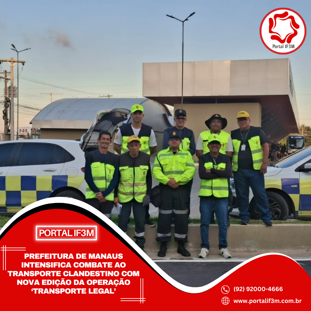 A Prefeitura de Manaus, por meio do Instituto Municipal de Mobilidade Urbana (IMMU), em parceria com a Guarda Municipal, realizou, no fim da tarde de segunda-feira, 21/7, mais uma edição da operação “Transporte Legal”, com o objetivo de coibir a atuação do transporte clandestino na capital. A ação ocorreu na avenida do Turismo, nas proximidades do Terminal de Integração 7 (T7), área que liga as zonas Oeste e Norte da cidade e é conhecida por registrar elevado fluxo de veículos irregulares.