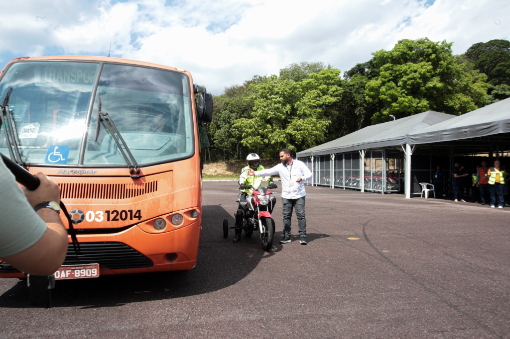 No início da programação, os participantes foram apresentados à estrutura do Ceth e, em seguida, tiveram a parte prática em que simularam – com a ajuda de instrutores da Moto Honda – a dificuldade em observar motociclistas que se posicionam em pontos cegos de ônibus. A ideia é que os profissionais tenham mais cuidado para evitar acidentes envolvendo motos.
