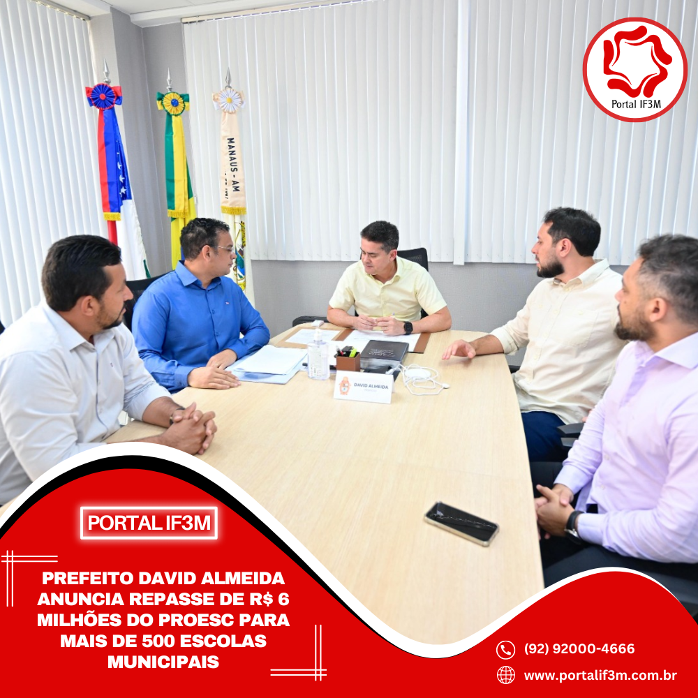 Em um gesto de valorização da educação e fortalecimento da autonomia escolar, o prefeito de Manaus, David Almeida, anunciou, nesta quarta-feira, 23/7, o repasse da segunda parcela dos recursos do Programa Orçamento na Escola (Proesc). O valor de R$ 6 milhões será creditado na quinta-feira, 24/7, diretamente na conta das unidades escolares da rede municipal, beneficiando mais de 500 escolas.