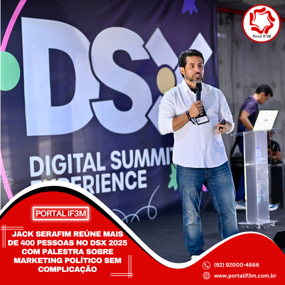 Com uma abordagem prática e sem rodeios, o estrategista político Jack Serafim foi um dos grandes destaques do Digital Summit Experience 2025 (DSX), realizado nos dias 30 e 31 de julho, no Centro de Convenções Vasco Vasques, em Manaus. No segundo dia do evento, mais de 400 pessoas acompanharam a palestra de Jack Serafim no Palco 2, com o tema “Marketing político sem complicação”, voltada a quem atua ou quer atuar no universo da comunicação eleitoral.
