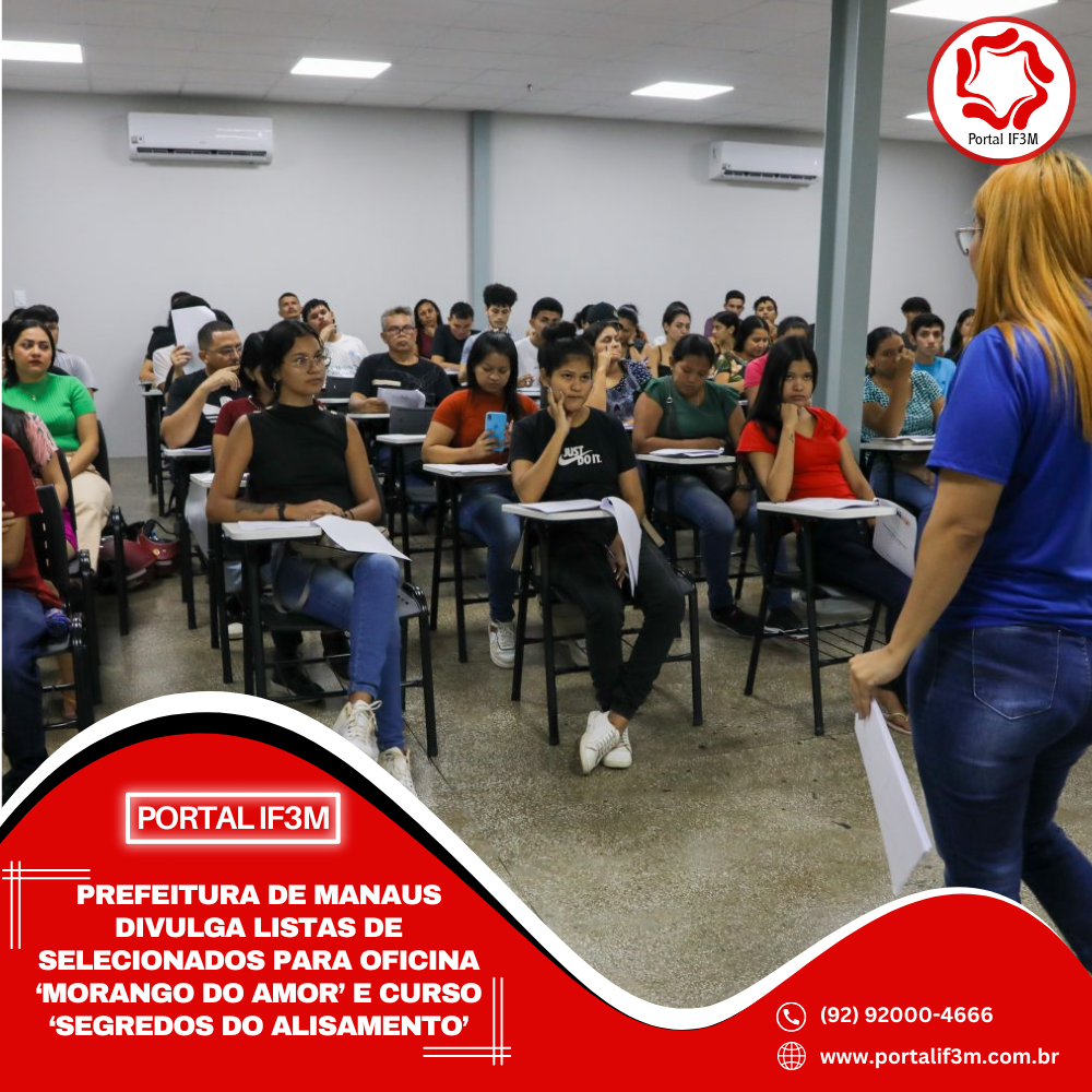A Prefeitura de Manaus, por meio da Secretaria Municipal do Trabalho, Empreendedorismo e Inovação (Semtepi), divulgou, nesta sexta-feira, 1º/8, a lista dos candidatos selecionados para participar da oficina “Morango do Amor”, voltada aos empreendedores da área da confeitaria, e do curso “Segredos do Alisamento”, com foco na profissionalização de mulheres e empreendedores do segmento da beleza.