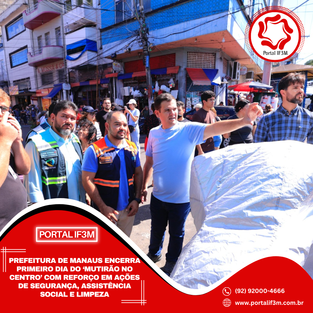 A Prefeitura de Manaus registra, no fim da tarde desta segunda-feira, 4/8, o balanço do primeiro dia de atividades do “Mutirão no Centro”, uma ação multissetorial que mobiliza 16 secretarias e órgãos municipais para recuperar a infraestrutura, garantir segurança e ampliar o acolhimento social no coração da cidade. Em pouco mais de doze horas, o resultado é um retrato numérico do esforço coletivo para devolver dignidade e funcionalidade à região central.