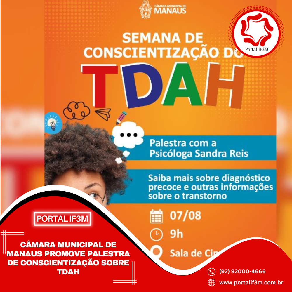 A Câmara Municipal de Manaus (CMM), por meio da Diretoria de Saúde, realiza nesta quinta-feira (7 de agosto) uma palestra voltada à conscientização sobre o Transtorno de Déficit de Atenção e Hiperatividade (TDAH).