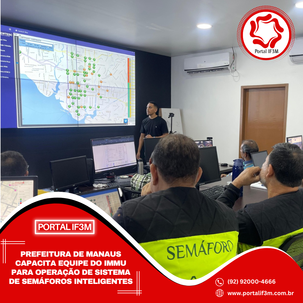 A Prefeitura de Manaus, por meio do Instituto Municipal de Mobilidade Urbana (IMMU), está promovendo um curso de atualização para a equipe técnica responsável pelos semáforos da cidade. A capacitação, que ocorre no Centro de Controle Operacional (CCO), zona Oeste, tem como foco o domínio das novas funcionalidades do sistema inteligente de semáforos, que já abrange 47% dos 278 cruzamentos semafóricos da capital.