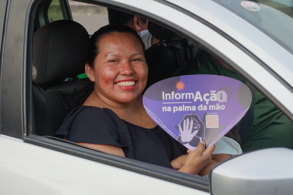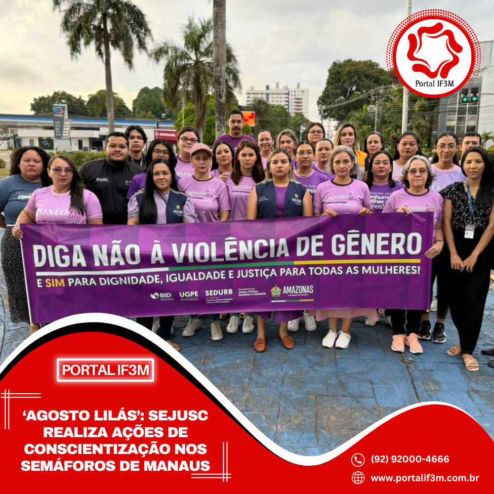 A Secretaria de Justiça, Direitos Humanos e Cidadania (Sejusc) promoveu, nesta quinta-feira (07/08), ações de conscientização em apoio ao “Agosto Lilás”, campanha nacional de combate à violência contra a mulher. As atividades foram realizadas em semáforos das zonas norte e sul de Manaus, com a distribuição de ventarolas informativas para motoristas e pedestres, além da exibição de faixas educativas com mensagens de enfrentamento à violência.