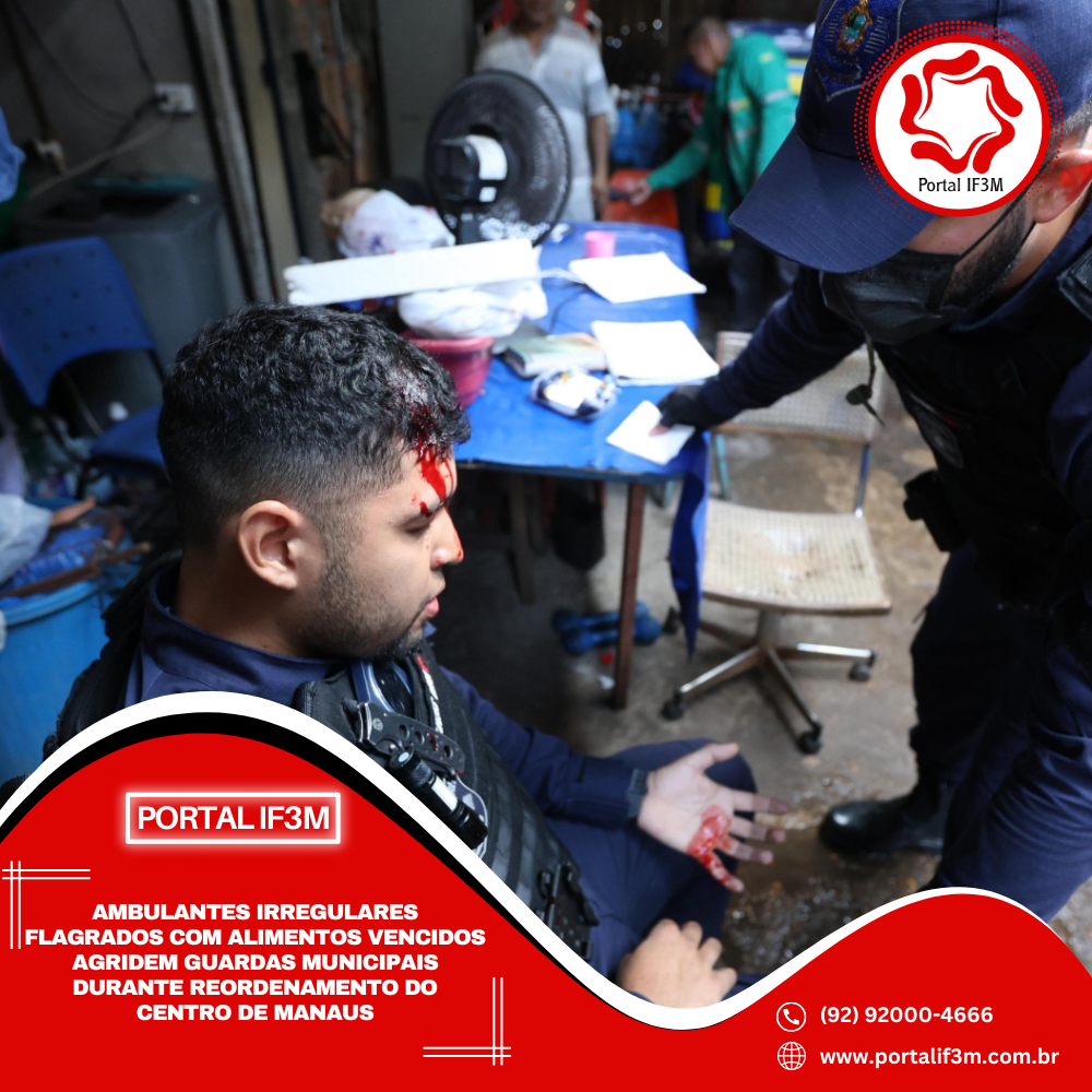 Agentes da Guarda Municipal de Manaus foram agredidos nesta quinta-feira (7/8) por ambulantes que atuavam de forma irregular que vendem produtos fora da validade no Centro da cidade. A ação ocorreu durante a continuidade do programa “Mutirão no Bairro”, que tem promovido o reordenamento da área central da capital amazonense. Dois servidores públicos tiveram ferimentos graves, incluindo cortes na cabeça, e vídeos que circulam nas redes sociais mostram um dos guardas com o rosto ensanguentado. Além das agressões, servidores da Prefeitura relataram ameaças feitas por membros de facções criminosas que estariam infiltrados entre os ambulantes.