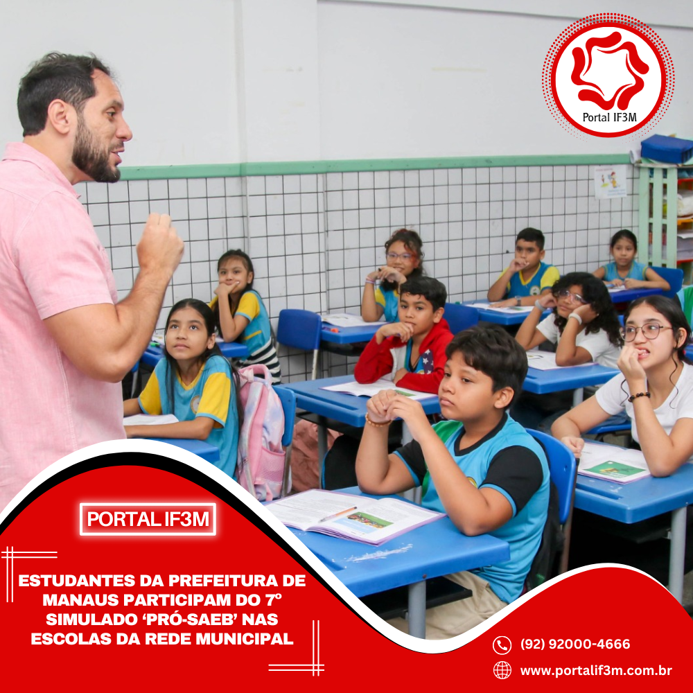 Com o objetivo de preparar os estudantes para a avaliação oficial do Sistema de Avaliação da Educação Básica (Saeb), a Prefeitura de Manaus, por meio da Secretaria Municipal de Educação (Semed), realizou, nesta quinta-feira, 7/8, a 7ª edição do Simulado “Pró-Saeb”. A atividade faz parte do calendário letivo e integra o programa “Educa+Manaus”, criado em 2023, que segue avançando nas unidades de ensino da rede municipal.