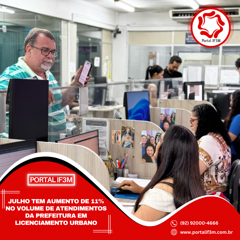 Com 6.774 serviços prestados, o mês de julho foi o recordista em atendimento realizado pela Prefeitura de Manaus, no sistema de licenciamento urbano da capital, segundo dados do Instituto Municipal de Planejamento Urbano (Implurb). Comparando com 2024, a alta é de 11%, contra 6.104 serviços realizados no período anterior.