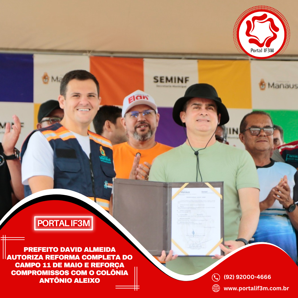 O prefeito de Manaus, David Almeida, assinou, nesta quinta-feira, 7/8, a ordem de serviço para a reforma completa do campo 11 de Maio, um dos espaços mais simbólicos do bairro Colônia Antônio Aleixo, na zona Leste da capital. Acompanhado do vice-prefeito e titular da Secretaria Municipal de Infraestrutura (Seminf), Renato Junior, o chefe do Executivo municipal reforçou a importância de investir em lazer, esporte e inclusão social nos bairros mais populares da cidade.
