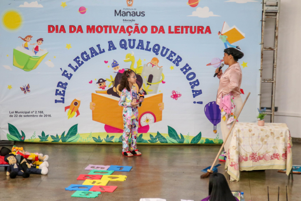 Como forma de incentivar o hábito da leitura entre os estudantes da rede municipal de ensino, a Prefeitura de Manaus, por meio da Secretaria Municipal de Educação (Semed), realizou, nesta quinta-feira, 14/8, uma solenidade em alusão ao Dia da Motivação da Leitura, com o tema “Ler é legal a qualquer hora!”. A programação aconteceu no auditório da escola municipal Professor Themístocles Pinheiro, localizada na rua Purui, bairro Jorge Teixeira, zona Leste da capital.