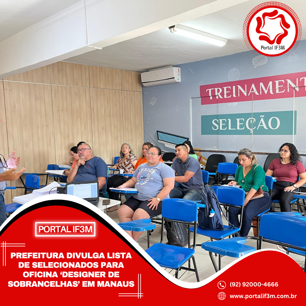A Prefeitura de Manaus, por meio da Secretaria Municipal do Trabalho, Empreendedorismo e Inovação (Semtepi), divulgou a lista dos candidatos selecionados para a oficina “Designer de Sobrancelhas”, realizada em parceria com o profissional Omar Castro. A capacitação será presencial e acontecerá entre os dias 18 e 22/8, das 8h às 12h, na galeria dos Remédios, localizada na rua Miranda Leão, nº 82, no centro da capital.