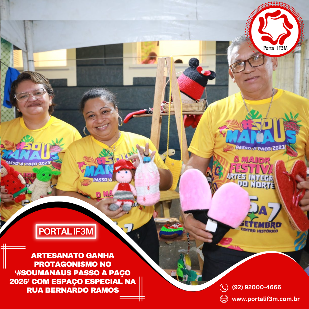 Comemorando 10 anos de história, o “#SouManaus Passo a Paço 2025”, coordenado pela Prefeitura de Manaus, por meio da Fundação Municipal de Cultura, Turismo e Eventos (Manauscult), traz como tema desta atual edição a “Festa do Povo Floresta”, que vai muito além de música e gastronomia. Um dos pontos fortes do festival é o artesanato, que novamente terá espaço garantido na rua Bernardo Ramos, no Centro, nos dias principais do evento, 5, 6 e 7/9, a partir das 16h até o encerramento da programação.