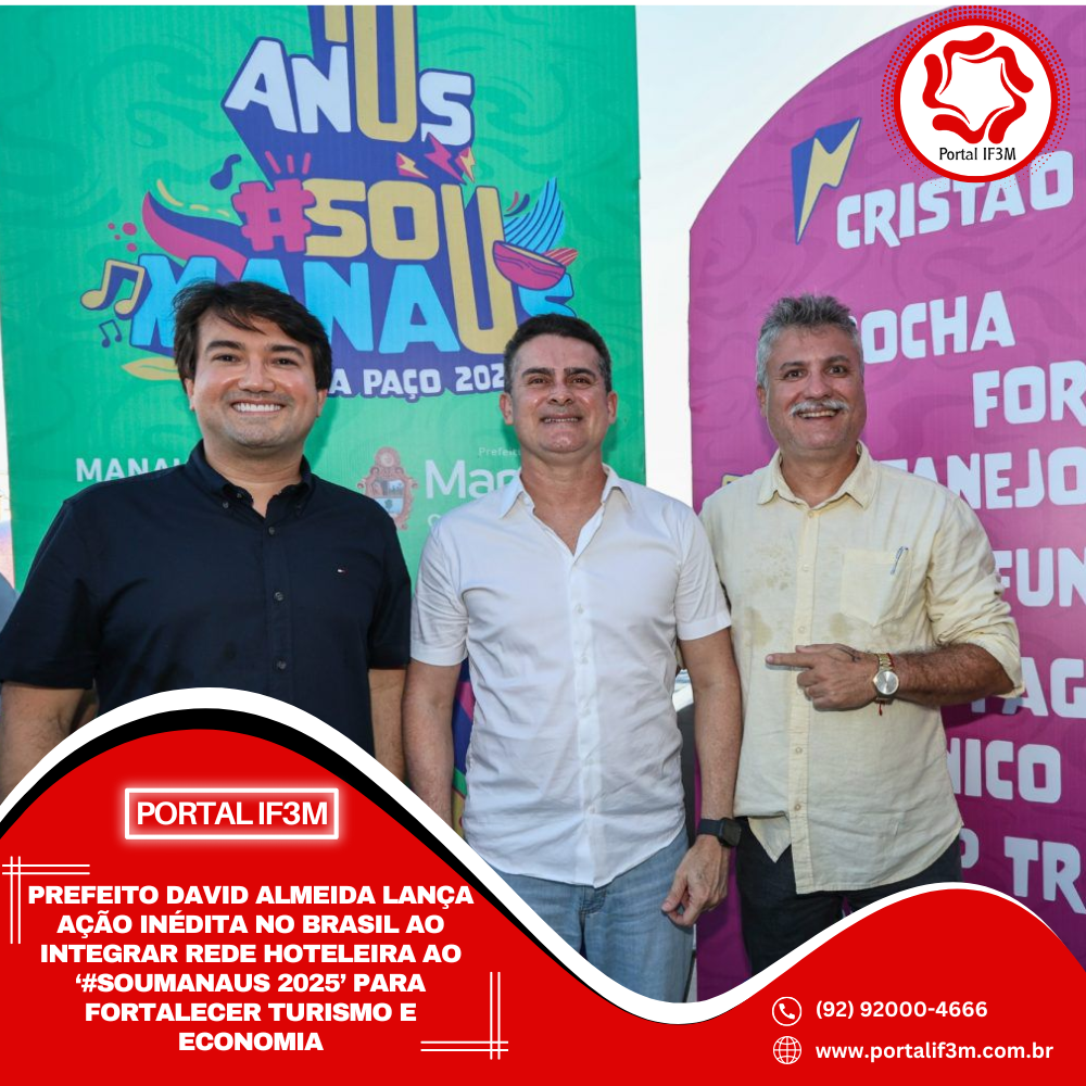 O prefeito de Manaus, David Almeida, acompanhado do vice-prefeito Renato Júnior e do diretor-presidente da Fundação Municipal de Cultura, Turismo e Eventos (Manauscult), Jender Lobato, anunciou, na tarde deste domingo, 24/8, uma medida inédita no país para impulsionar a economia e o setor turístico da capital amazonense. Mais de 15 hotéis do Centro e entorno foram credenciados pela prefeitura para oferecer hospedagem vinculada ao “#SouManaus Passo a Paço 2025”, garantindo aos hóspedes acesso exclusivo às pulseiras que liberam entrada em dois dos 17 palcos do maior festival de artes integradas do Brasil.