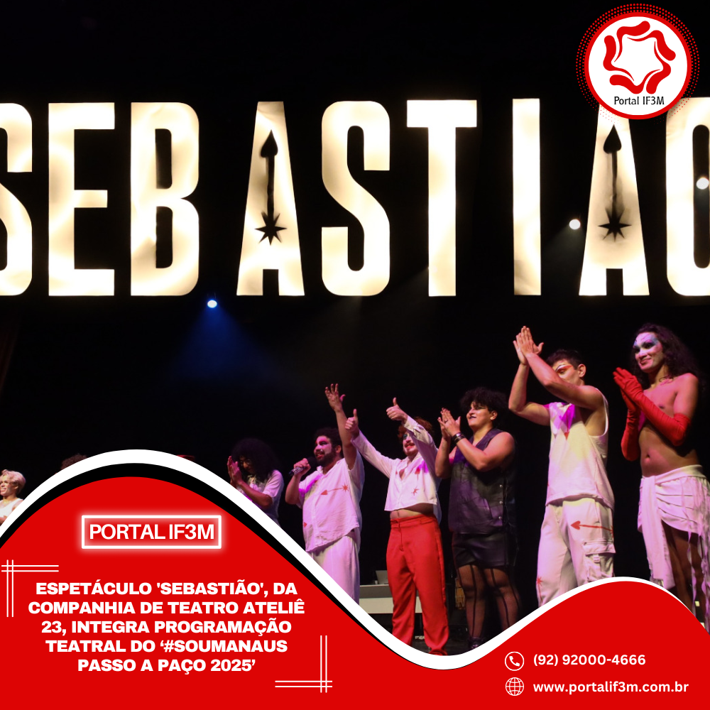 A Prefeitura de Manaus, por meio da Fundação Municipal de Cultura, Turismo e Eventos (Manauscult), amplia a diversidade da programação cultural do “#SouManaus Passo a Paço 2025” com mais uma atração teatral. O espetáculo “Sebastião”, da companhia de teatro Ateliê 23, será apresentado no dia 6/9, às 19h, no teatro da Instalação, localizado no centro histórico da cidade.
