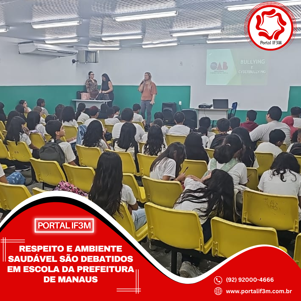 A ação faz parte do projeto “OAB vai à Escola”, uma parceria entre a Secretaria Municipal de Educação (Semed) e a OAB-AM, que leva palestras sobre bullying e cyberbullying às escolas municipais.