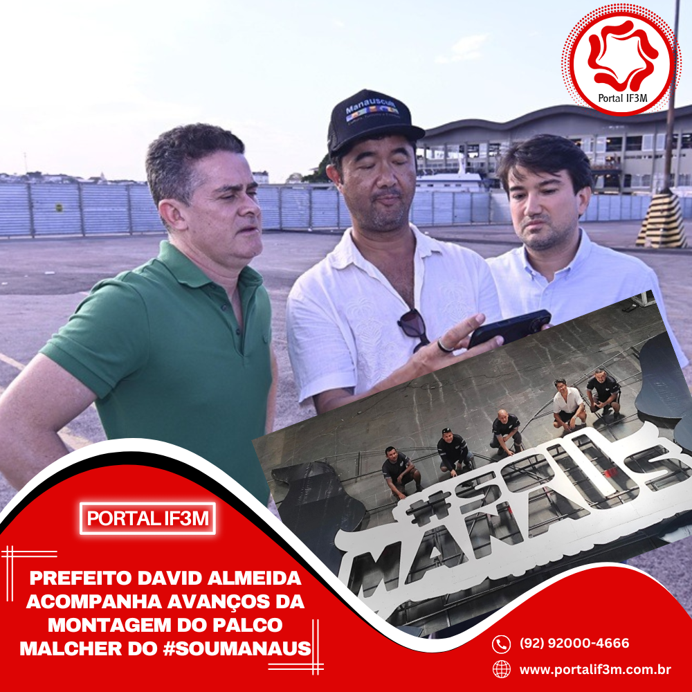 O prefeito de Manaus, David Almeida, esteve, no final da tarde desta terça-feira, 26/8, no Porto de Manaus, acompanhando os avanços da montagem do palco Malcher, um dos principais espaços do festival “#SouManaus Passo a Paço 2025”. A visita contou com a presença do presidente da Fundação Municipal de Cultura, Turismo e Eventos (Manauscult), Jender Lobato, da secretária municipal de Comunicação, Camila Silva, além de artistas e técnicos envolvidos no projeto cenográfico.
