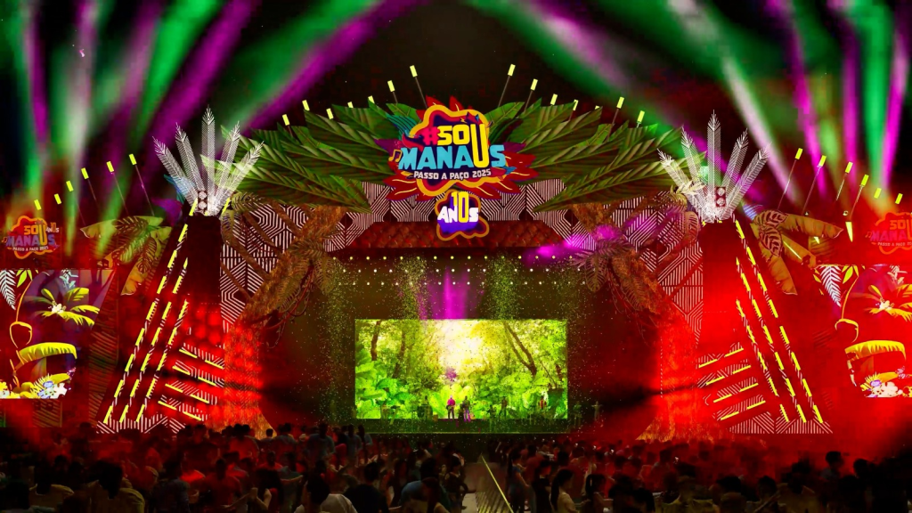 Assinado pelo cenógrafo e diretor de Arte, Andrey Hermuche, com mais de 27 anos de carreira e atuação em mais de 500 projetos pelo Brasil, o palco já está com 60% da estrutura concluída. Serão 80 metros de comprimento, cenografia monumental, diagonal de LEDs e elementos que remetem à biodiversidade amazônica, como Sumaúmas e seringais, em uma concepção projetada integralmente em 3D. A grandiosidade do espaço o torna compatível a palcos de megafestivais, como o Palco Mundo, do Rock in Rio, consolidando Manaus no circuito dos maiores festivais do país.