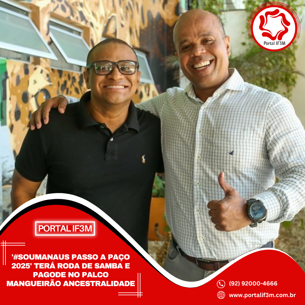 O maior festival gratuito de artes integradas do Brasil, o “#SouManaus Passo a Paço 2025”, terá um palco dedicado para apresentações da negritude manauara, no próximo dia 7/9, com roda de samba e pagode no palco “Mangueirão Ancestralidade”. Serão duas horas de apresentações, das 17h às 19h, com artistas locais que representam a cultura negra na cidade.