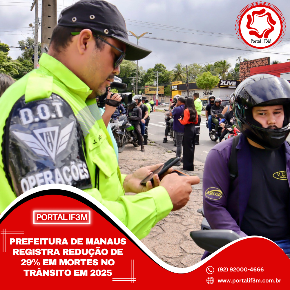 A Prefeitura de Manaus, por meio do Instituto Municipal de Mobilidade Urbana (IMMU), apresenta o balanço de mortes no trânsito registrado entre os meses de janeiro e 1º de setembro de 2024 e 2025. O levantamento aponta uma redução de 29% nos óbitos no trânsito da capital, resultado direto das ações integradas de fiscalização, educação, tecnologia e melhorias na sinalização e infraestrutura viária.