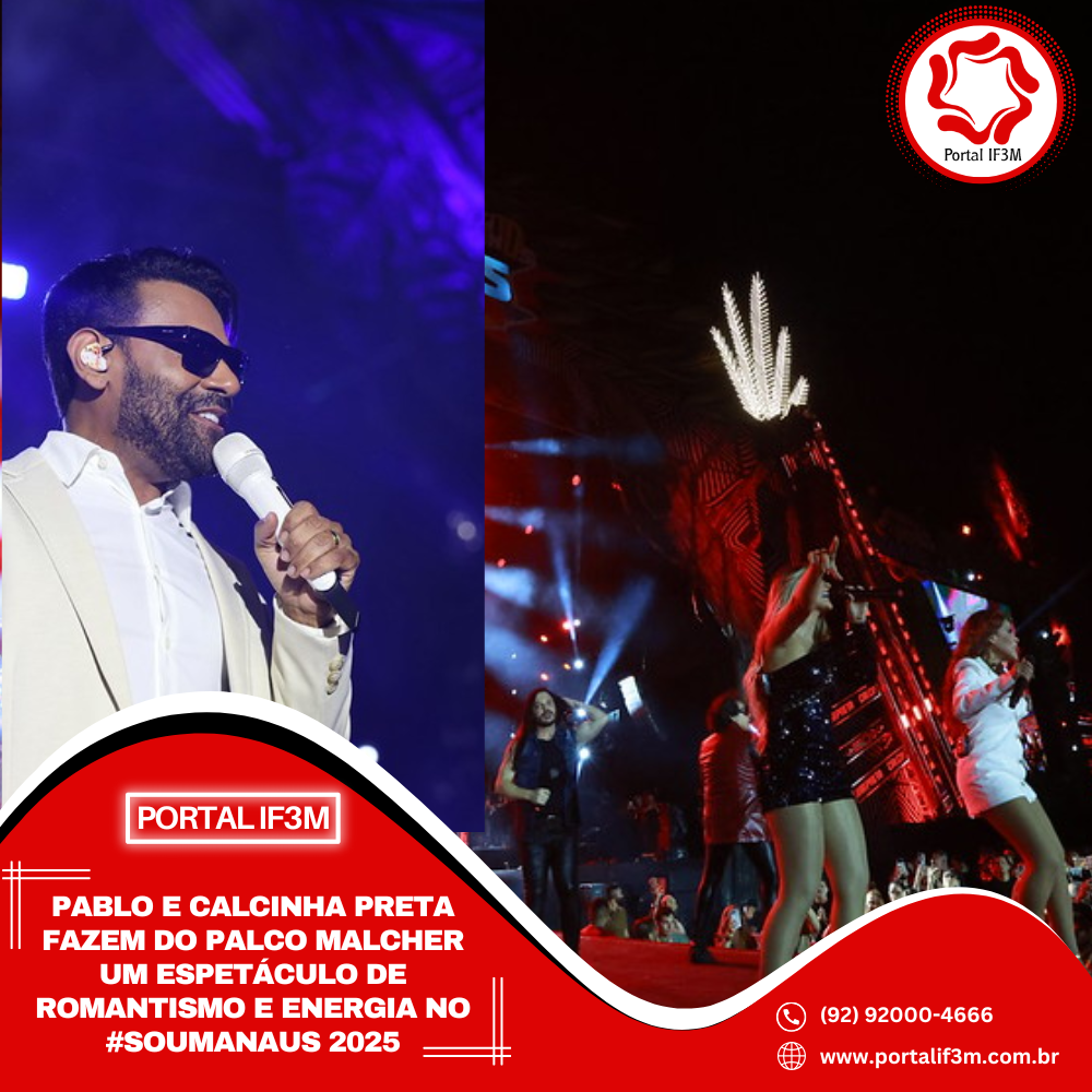 A segunda noite do #SouManaus Passo a Paço 2025 transformou o palco Malcher em um encontro de estilos e sentimentos. O romantismo apaixonado de Pablo, o “rei da sofrência”, e a energia contagiante da banda Calcinha Preta embalaram milhares de pessoas no Centro Histórico de Manaus, neste sábado, 6/9, reforçando a diversidade que faz do festival o maior evento gratuito de artes integradas do Brasil.