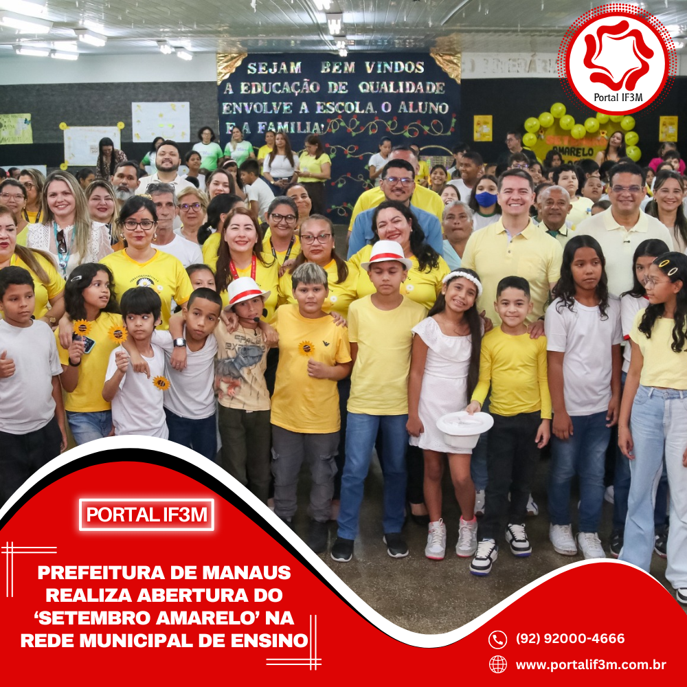 A Prefeitura de Manaus, por meio da Secretaria Municipal de Educação (Semed), realizou, nesta quarta-feira, 10/9, a abertura da campanha “Setembro Amarelo” na escola municipal Jornalista Sabá Raposo, localizada no bairro Manoa, zona Norte. O evento reuniu cerca de 140 estudantes, professores e subsecretários, em uma programação voltada à reflexão e à conscientização sobre saúde mental.