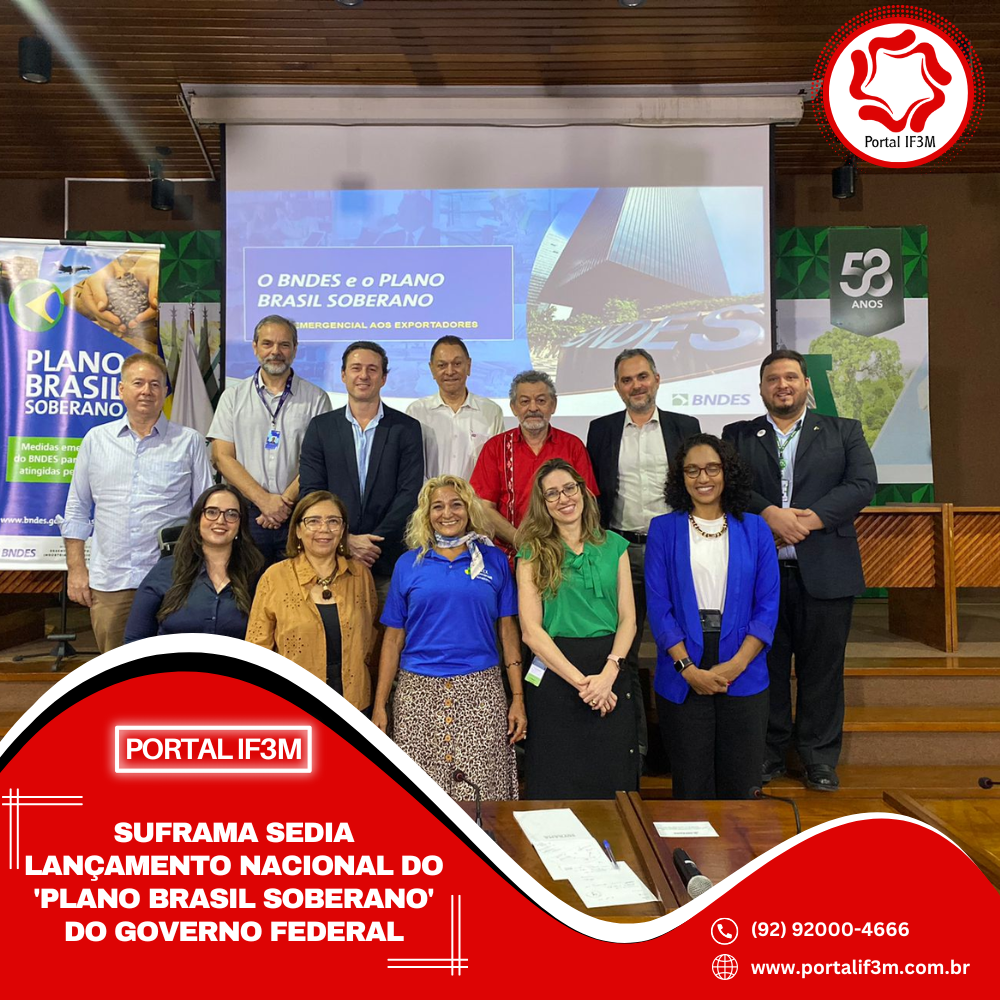 A Suframa sediou na tarde desta quarta-feira (10), em Manaus, o lançamento nacional do “Plano Brasil Soberano”, uma iniciativa do governo federal, por meio do Banco Nacional de Desenvolvimento Econômico e Social (BNDES), que vai operacionalizar R$ 40 bilhões em crédito para apoiar o setor exportador brasileiro afetado pelas medidas tarifárias impostas pelo governo dos Estados Unidos. Ao todo estão previstos investimentos na ordem de R$ 30 bilhões oriundos do Fundo Garantidor de Exportações (FGE) e R$ 10 bilhões em recursos do próprio banco.