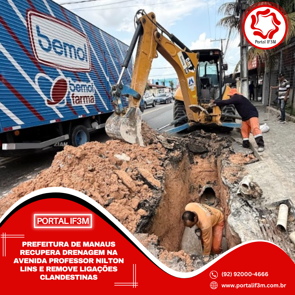 A Prefeitura de Manaus, por meio da Secretaria Municipal de Infraestrutura (Seminf), executa, nesta sexta-feira, 19/9, uma intervenção emergencial na rede de drenagem profunda da avenida Professor Nilton Lins, no bairro Flores, zona Centro-Sul. A ação foi necessária após a identificação de ligações clandestinas na galeria subterrânea, que comprometeram a estrutura e provocaram uma cratera na via.