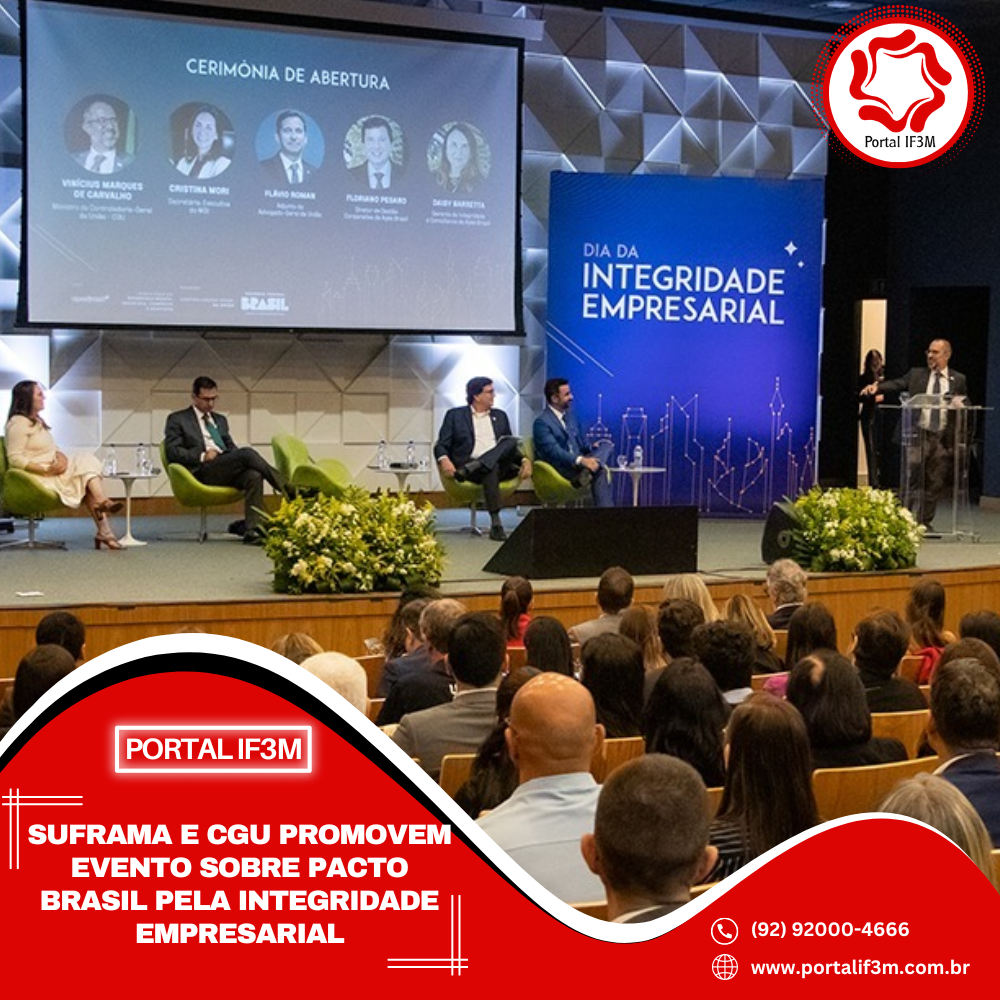 A Superintendência da Zona Franca de Manaus (Suframa), em parceria com a Controladoria-Geral da União (CGU), realiza na quinta-feira (25), das 14h às 17h, no Auditório Floriano Pacheco, o evento de apresentação do Pacto Brasil pela Integridade Empresarial. A iniciativa busca incentivar empresas a assumir um compromisso público com práticas de integridade, voltadas à prevenção e ao combate à fraude e à corrupção.