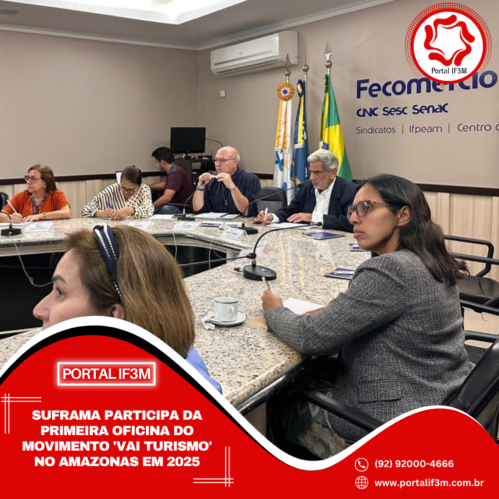 A Superintendência da Zona Franca de Manaus (Suframa) participou, nesta segunda-feira (22), da primeira oficina do movimento “Vai Turismo” no Amazonas em 2025, realizada na sede da Fecomércio-AM. A iniciativa é promovida pela Confederação Nacional do Comércio de Bens, Serviços e Turismo (CNC) em parceria com o Conselho Empresarial de Turismo e Hospitalidade do Amazonas (Cetur-AM), órgão consultivo da Fecomércio do qual a Suframa faz parte.