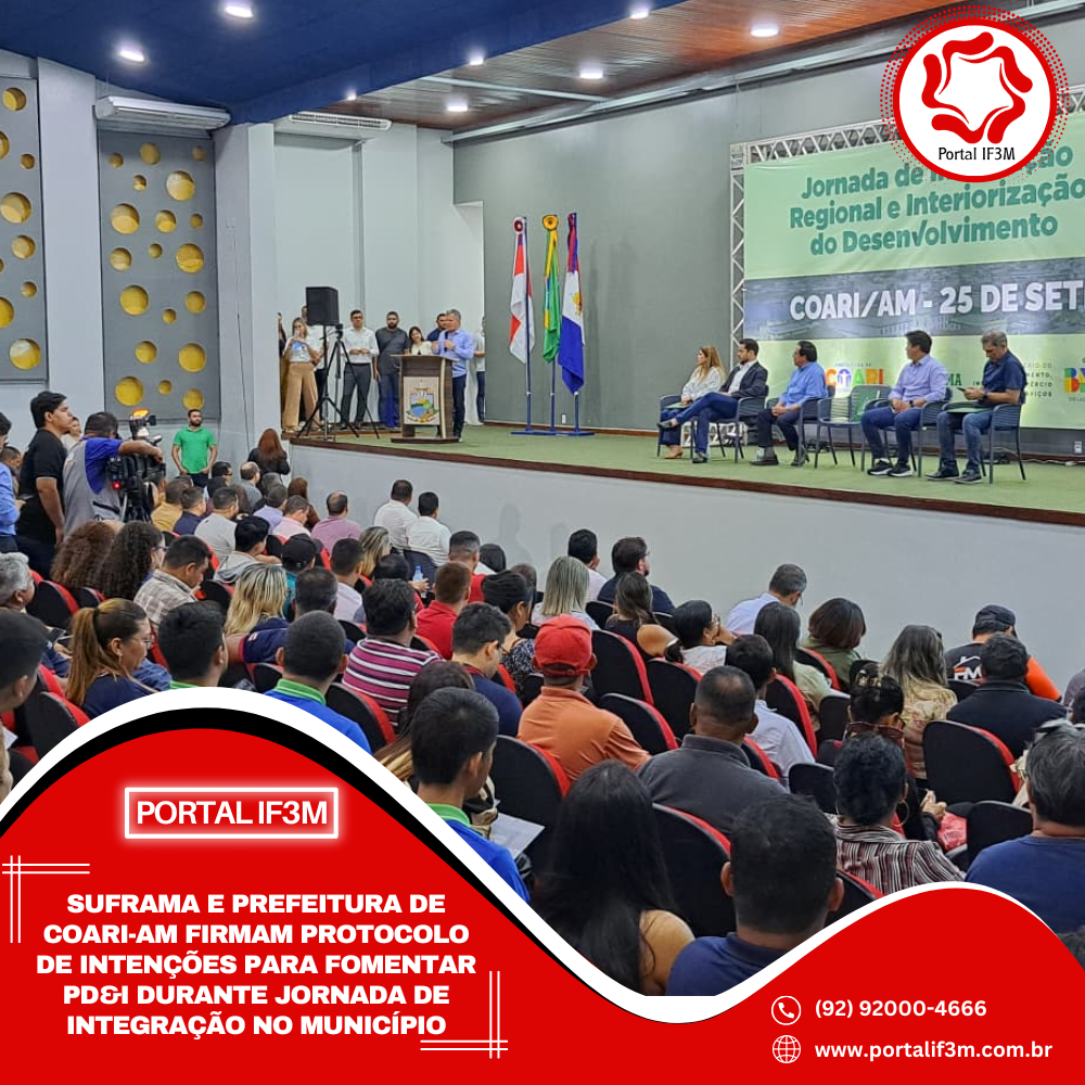 A Superintendência da Zona Franca de Manaus (Suframa) realizou, nesta quinta-feira (25), a Jornada de Integração Regional e Interiorização do Desenvolvimento em Coari, com a assinatura de um protocolo de intenções junto à prefeitura municipal. O documento prevê ações conjuntas voltadas para o fomento à Pesquisa, Desenvolvimento e Inovação (PD&I) e a futura implantação de um parque tecnológico na cidade.
