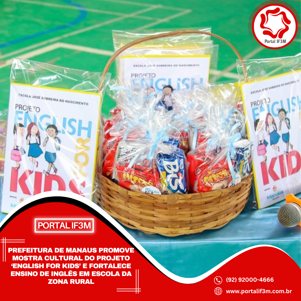 A Prefeitura de Manaus, por meio da Secretaria Municipal de Educação (Semed), realizou, nesta quinta-feira, 25/9, a Mostra Cultural do projeto “English For Kids”, com estudantes do ensino fundamental anos iniciais (1º ao 5º) na escola municipal José Sobreira, localizada na comunidade Nossa senhora de Fátima, rio Negro, zona rural da capital. A ação abre espaço para professores apresentarem atividades que fortalecem o aprendizado de inglês, envolvendo estudantes e a comunidade escolar.