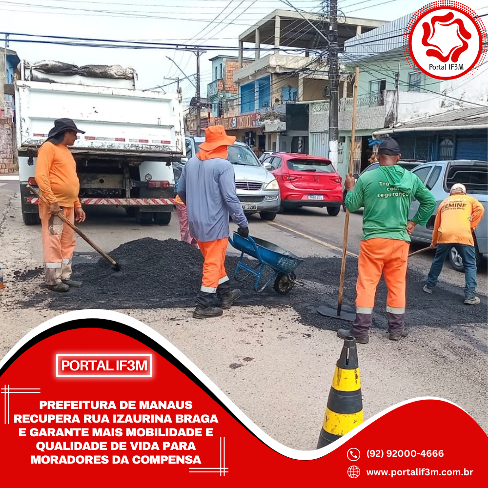 A Prefeitura de Manaus, por meio da Secretaria Municipal de Infraestrutura (Seminf), iniciou, nesta sexta-feira, 26/9, a recuperação asfáltica da rua Izaurina Braga, no bairro Compensa, zona Oeste da capital. A obra busca melhorar a trafegabilidade da via, além de revitalizar o aspecto urbano do local, beneficiando diretamente motoristas, pedestres e moradores da região.