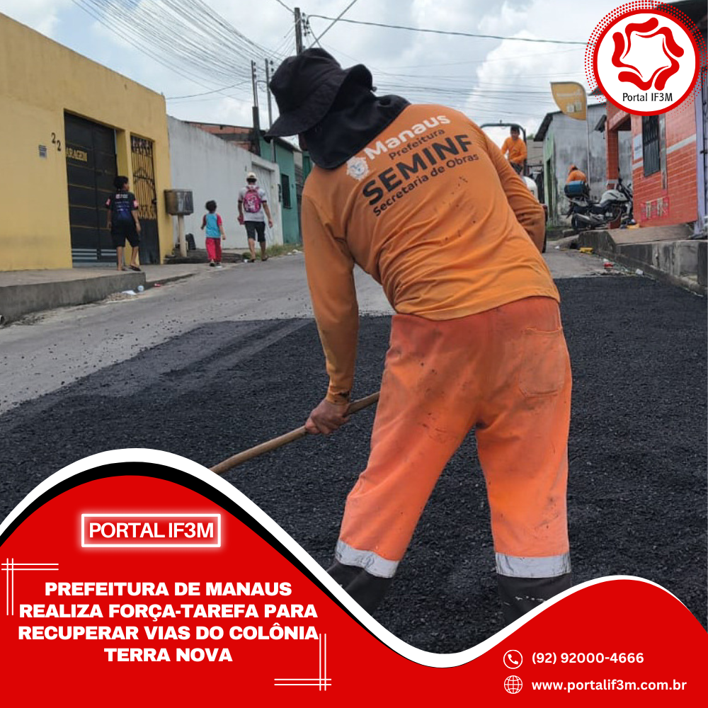 A Prefeitura de Manaus, por meio da Secretaria Municipal de Infraestrutura (Seminf), avançou, nesta sexta-feira, 26/9, com obras de recuperação asfáltica no bairro Colônia Terra Nova, zona Norte da capital. As ruas 13 de Maio e Vitória Beatriz, a avenida Buriti e a travessa Canaã receberam nova pavimentação, eliminando buracos e trechos desgastados da via, que comprometiam o tráfego.