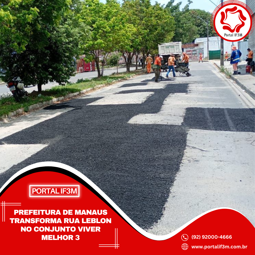 A Prefeitura de Manaus, por meio da Secretaria Municipal de Infraestrutura (Seminf), concluiu a recuperação asfáltica da rua Leblon, no conjunto Viver Melhor 3, zona Norte da capital. A intervenção faz parte de um amplo programa de revitalização viária que alcança todas as zonas da cidade, garantindo mais qualidade de vida à população.