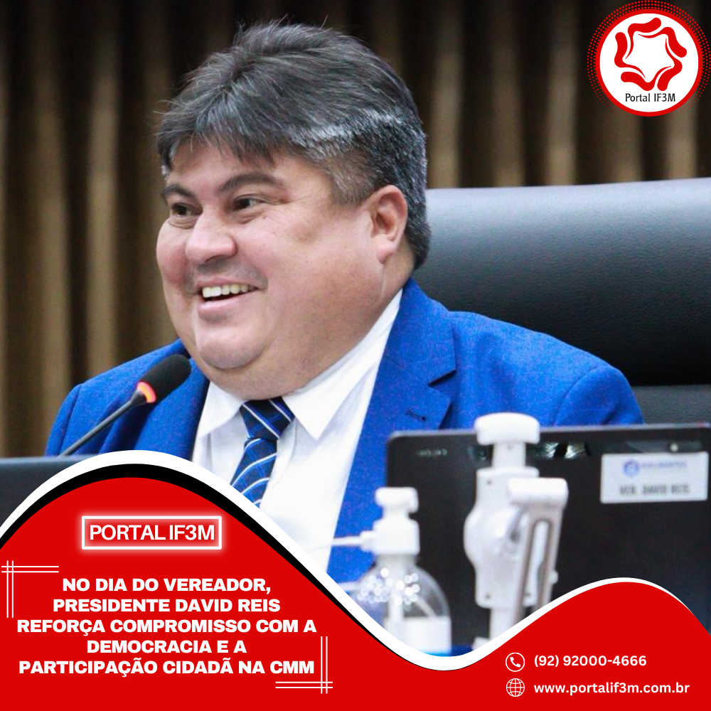 No Dia do Vereador, celebrado nesta quarta-feira (1º de outubro), o presidente da Câmara Municipal de Manaus (CMM), David Reis (Avante), destacou o papel essencial do Parlamento Municipal como espaço legítimo de escuta da população. Durante a 86ª Sessão Ordinária, o vereador reafirmou o compromisso de sua gestão com a transparência, o diálogo e a participação democrática, e enfatizou que todos os cidadãos que procuram a Câmara estão no local adequado.