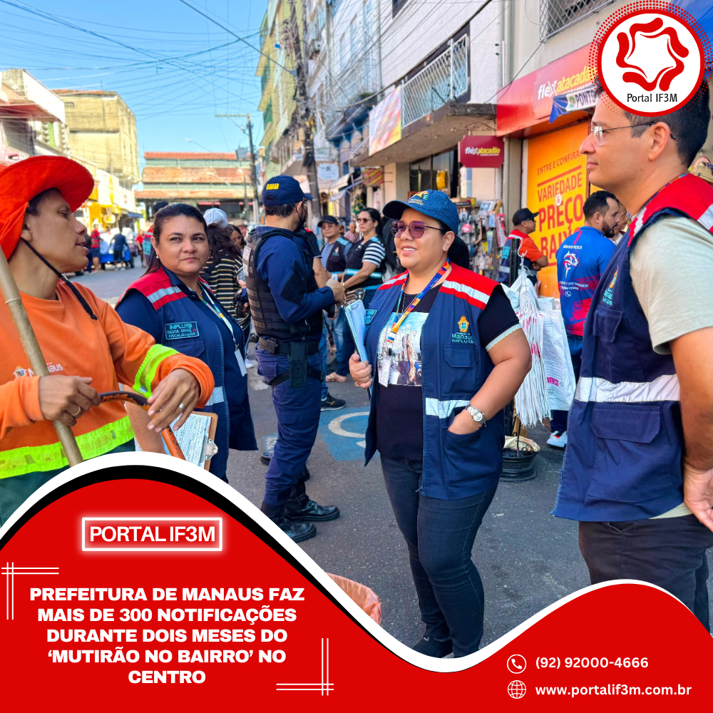 Nos últimos dois meses, o “Mutirão no Bairro” do centro histórico, ação inédita da Prefeitura de Manaus, vem mudando a rotina das ruas da zona Sul. Em ação integrada com dezenas de secretarias, o Instituto Municipal de Planejamento Urbano (Implurb) já fez 314 notificações e duas autuações por obstrução de calçadas e ocupação irregular de logradouros públicos, conforme balanço atualizado até esta terça-feira, 20/9.