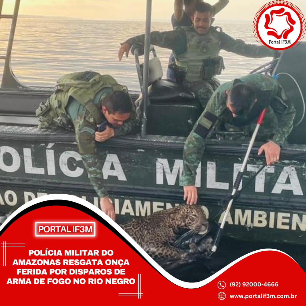 A Polícia Militar do Amazonas (PMAM), por meio do Batalhão de Polícia Ambiental (BPAmb), resgatou, na tarde de quarta-feira (1º/10), uma onça pintada, que apresentava sinais de ferimento e cansaço, enquanto tentava não se afogar, em uma área ribeirinha, no Rio Negro-Amazonas.