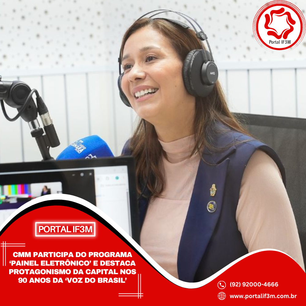 A Câmara Municipal de Manaus (CMM) ganhou destaque nacional mais uma vez ao participar do programa Painel Eletrônico, da Rádio Câmara, em Brasília. A entrevista, conduzida pela jornalista Ana Raquel Macedo, contou com a participação da diretora de Comunicação da Casa Legislativa, Roberta Bindá, que falou sobre o protagonismo da capital amazonense nas comemorações dos 90 anos da Voz do Brasil.