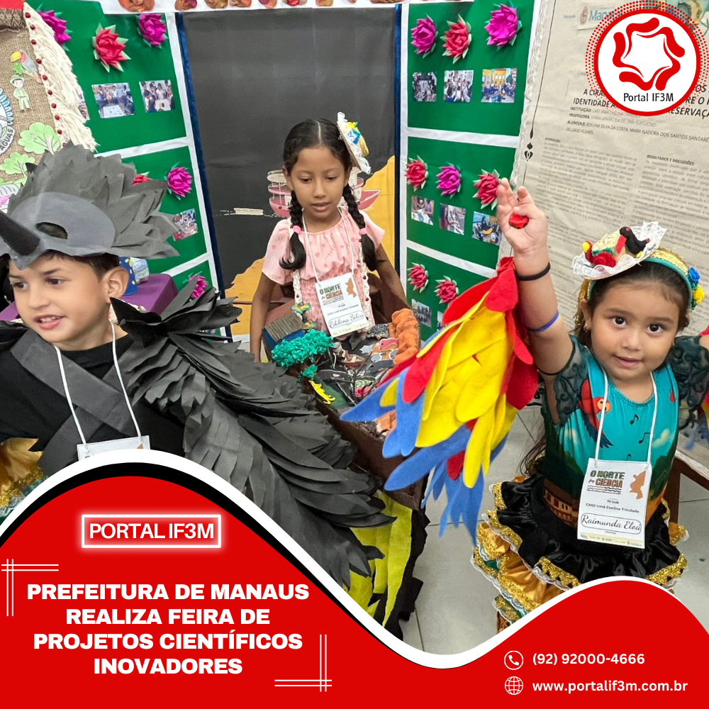 Com o tema “O encontro das águas: do mito à ciência amazônica”, aproximadamente 400 alunos do 1º ao 9º ano do ensino fundamental, da educação infantil, indígena, especial e de Jovens e Adultos (EJA), da Prefeitura de Manaus, por meio da Secretaria Municipal de Educação (Semed), participaram da 13ª edição do “O Norte faz ciência: Feira das Escolas Municipais da DDZ Norte”, nesta sexta-feira, 3/10, no Centro Integrado Municipal de Educação (Cime) Dra. Viviane Estrela Marques Rodella, bairro Lago Azul, zona Norte.