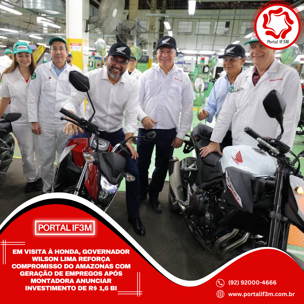 O governador do Amazonas, Wilson Lima, visitou nesta quinta-feira (09/10) a fábrica da Honda em Manaus, no Polo Industrial de Manaus (PIM) e reforçou o compromisso do Estado com a geração de empregos e com a manutenção do modelo Zona Franca para o desenvolvimento econômico e social. A visita ocorreu após o anúncio feito pela Honda de investir na operação de motocicletas no Brasil até 2029, o montante de R$ 1,6 bilhão, o que permitirá ampliar a capacidade produtiva no Amazonas, modernizar processos e lançar novos modelos.