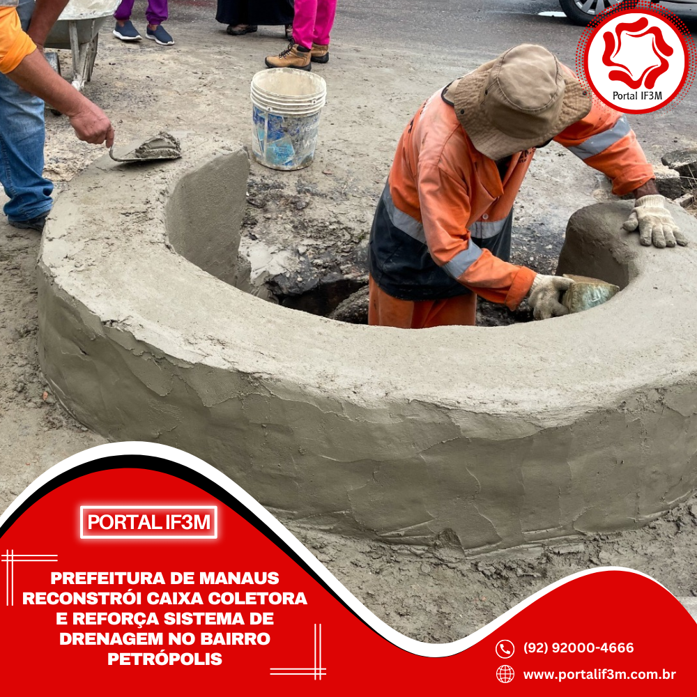 A Prefeitura de Manaus, por meio da Secretaria Municipal de Infraestrutura (Seminf), realizou, nesta quinta-feira, 9/10, uma ação de recuperação e desobstrução da caixa coletora, localizada na rua Cunha Melo, no bairro Petrópolis, zona Sul da capital. A obra tem como objetivo restabelecer o pleno funcionamento do sistema de drenagem superficial, a fim de prevenir os alagamentos que eram recorrentes na área.