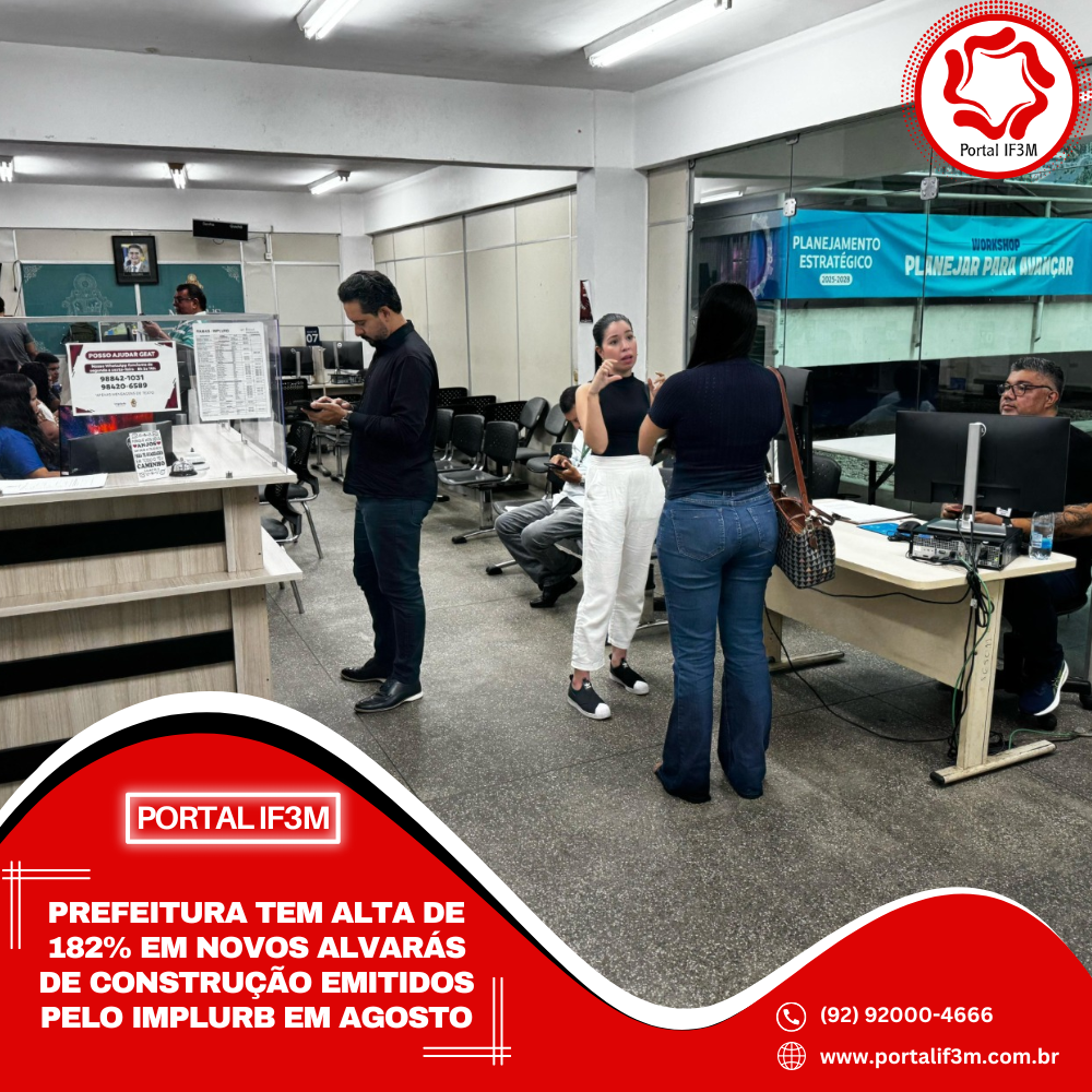 Com 119,5 mil metros quadrados licenciados em novos alvarás de construção em agosto, a Prefeitura de Manaus, via Instituto Municipal de Planejamento Urbano (Implurb), teve incremento de 182% no mês, em comparação ao mesmo período de 2024, quando foram registrados 42,4 mil metros quadrados.