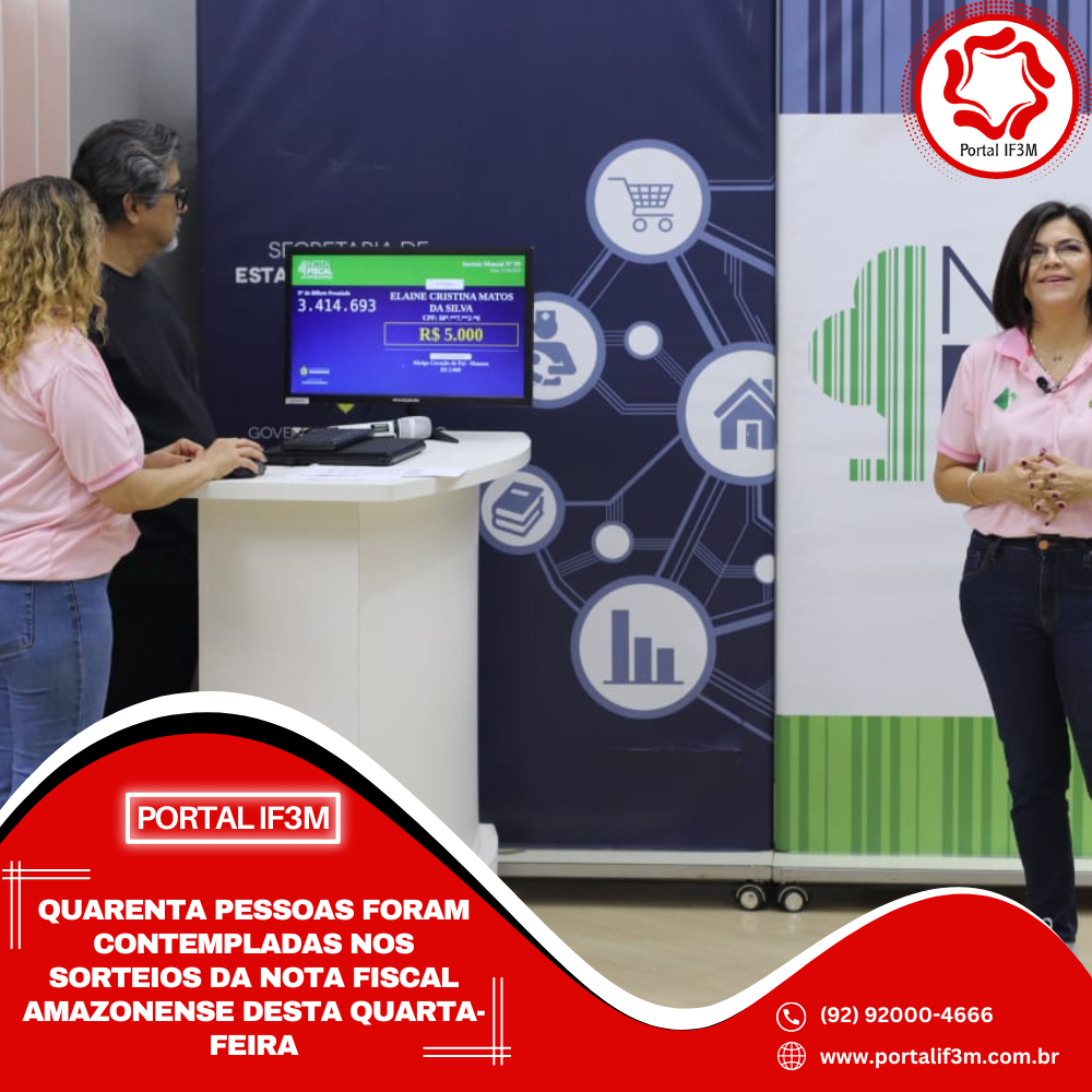 Nesta quarta-feira (15/10), 40 cidadãos do Amazonas foram contemplados no sorteio mensal e regional da Campanha Nota Fiscal Amazonense. Ao todo foram sorteados R$ 174 mil em prêmios distribuídos entre os ganhadores e as entidades sociais por eles indicadas.
