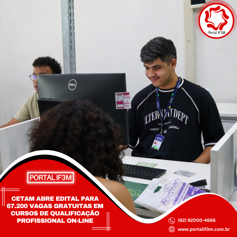O Centro de Educação Tecnológica do Amazonas (Cetam) está com edital aberto para 67.200 vagas em 42 cursos de qualificação profissional na modalidade Ensino a Distância (EaD). O edital completo com regras, pré-requisitos por curso e cargas horárias, está disponível no endereço: www.cetam.am.gov.br/tudo-sobre-inscricoes/.