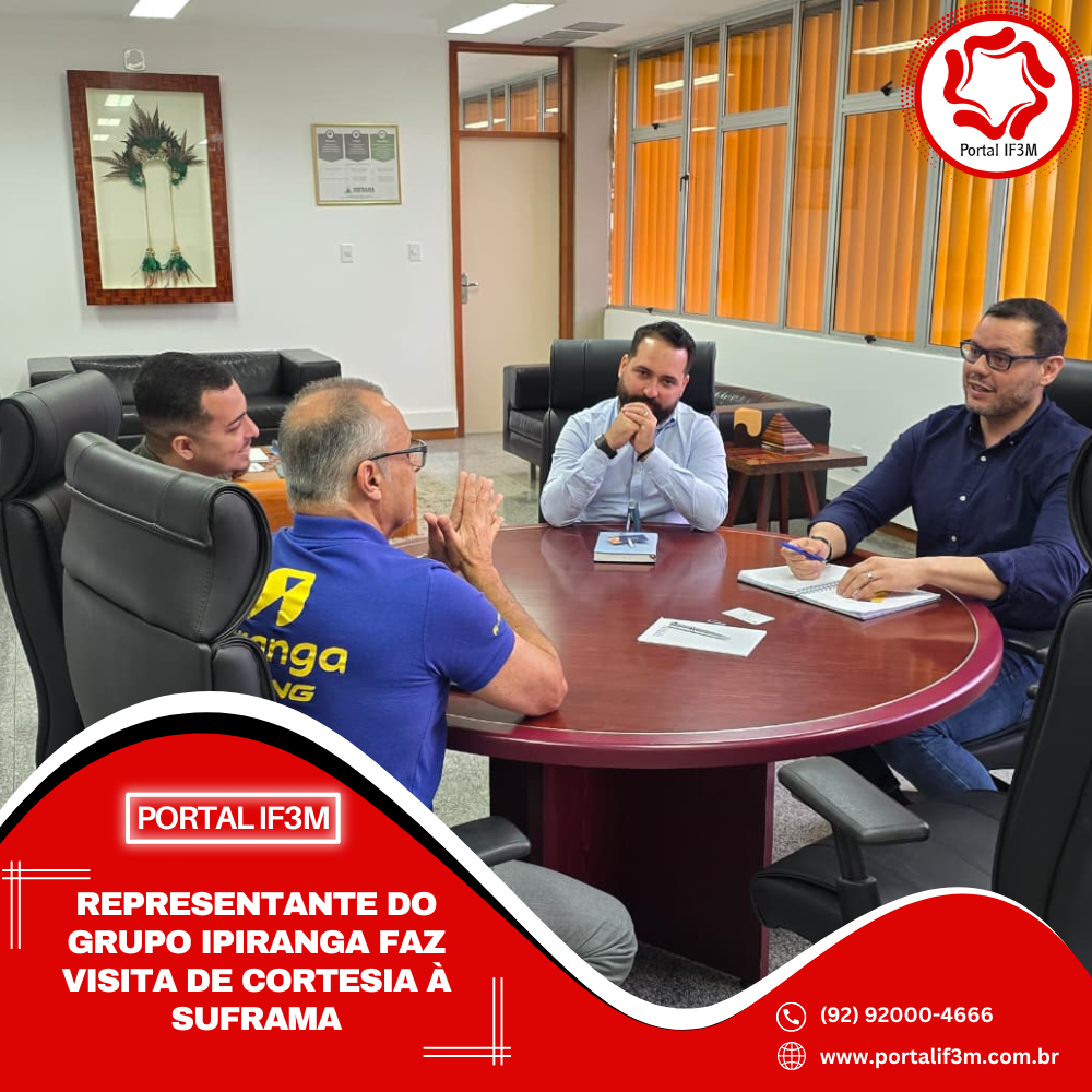 O superintendente-adjunto de Projetos da Suframa, Leopoldo Montenegro, recebeu nesta quarta-feira (22), na sede da Autarquia, o analista de Processos Paralegal Sênior do Grupo Ipiranga, Luiz Figueiredo. Durante a visita de cortesia, Montenegro destacou os indicadores positivos de crescimento do Polo Industrial de Manaus (PIM) obtidos pela atual gestão, com ênfase no aumento expressivo da mão de obra empregada e na intensificação do ritmo de aprovação de projetos pelo Conselho de Administração da Suframa (CAS).
