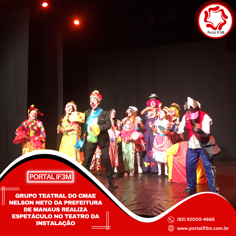 O grupo teatral do Centro Municipal de Arte-Educação (Cmae) Nelson Neto, da Prefeitura de Manaus, apresentou, na noite de quinta-feira, 23/10, o espetáculo “E agora, Rei Papudo?”, de Walther Moreira Santos, no Teatro da Instalação, localizado no Centro. A montagem reuniu 35 atores em 50 minutos de apresentação, unindo aprendizado em sala de aula e prática artística no palco.
